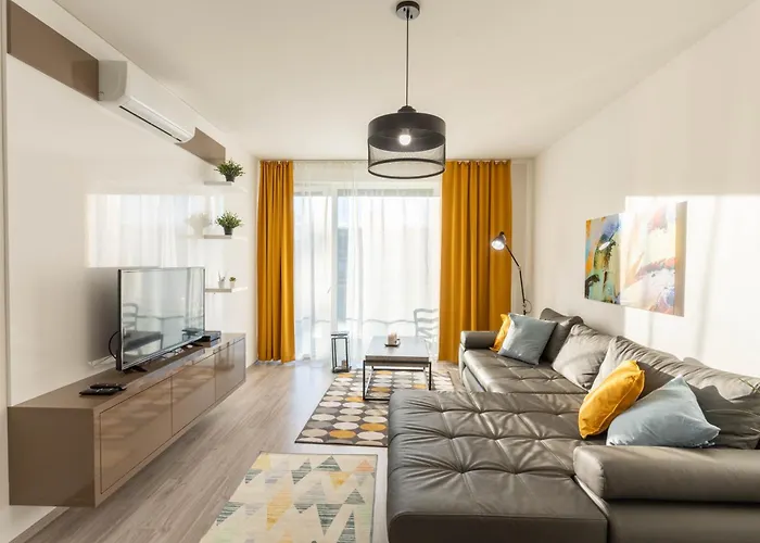 海辺の寝室1室のSunset Resort 211 FonyódはFonyódのビ-チに位置し,Sipos Mountain Lookoutから歩いて25分以内です. この53m^2のアパ-トには庭園の景色を望むテラスがあります.